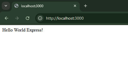 Jika muncul pesan seperti diatas sesuai kode di file 📄index.js berarti server sudah berhasil jalan. Silahkan buka di browser alamatnya http://localhost:3000
