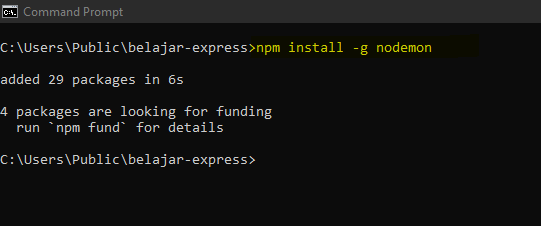 Nodemon adalah library untuk NodeJs yang membantu kita melihat perubahan langsung tanpa harus merestart server terlebih dahulu. Ini sangat membantu kita dalam proses pengembangan aplikasi.