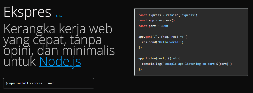 Kunjungi website resminya https://expressjs.com/ untuk dokumentasi lebih lengkap.
